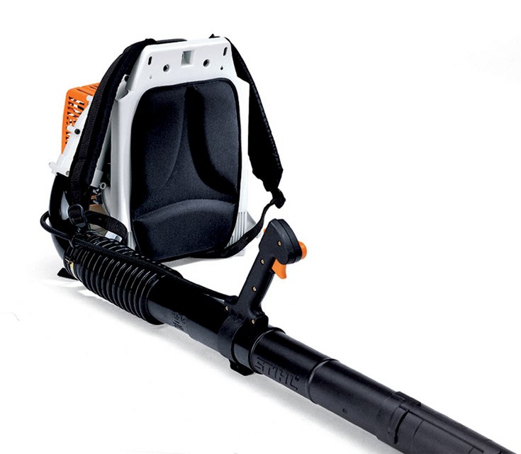 High-performance blower for removing grass and hedge cuttings, leaves and debris from large areas. STIHL anti-vibration system, wide shoulder straps, STIHL ElastoStart, locking throttle lever, carry handle.